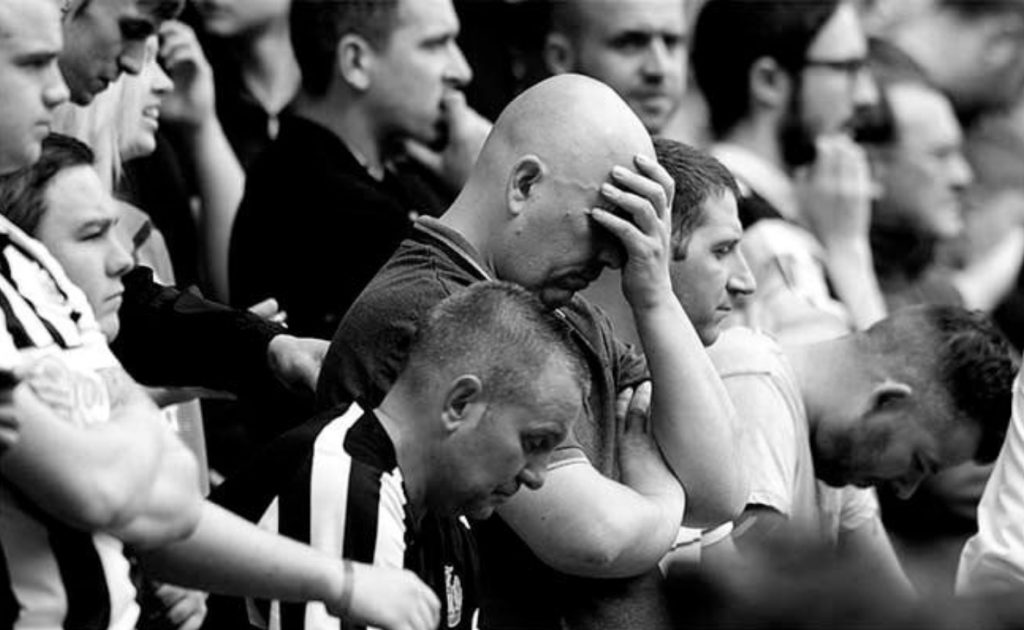 I remember a dynamic exhibition of photographs along the walls of the RVI, one year, depicting these opposing emotions at a Newcastle United football match, and how moving that presentation was, so I’ve asked google to provide me with similar images. These are great set pieces, within the safety of crowds, somehow, and similarly during great theatre, we can experience shared emotions together, with no fear of recrimination. We talk about our ‘suspension of disbelief’ during a play; I wonder if we might also consider a kind of ’emotional de-repression’ when engaged in a moving theatrical, or operatic experience.