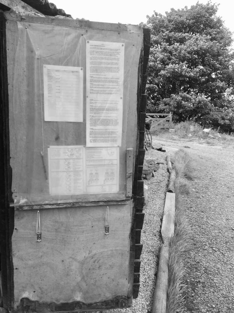The tried and true method of putting the tick sheet into a plastic sleeve is okay, but fiddly, since you have both to push-pin the envelope onto the door, and then prise the pins away before you can remove the paper, before you can begin to write. In my experience, whatever gets in the way of making a quick note will mitigate against even bothering. Moreover, the wind will tear the sheets off the push-pins, willy-nilly, and that’s even more frustrating. In one of those episodes where small-scale engineering challenges hit the fragile buffers of my dwindling mental capacity, I felt rather stymied.
